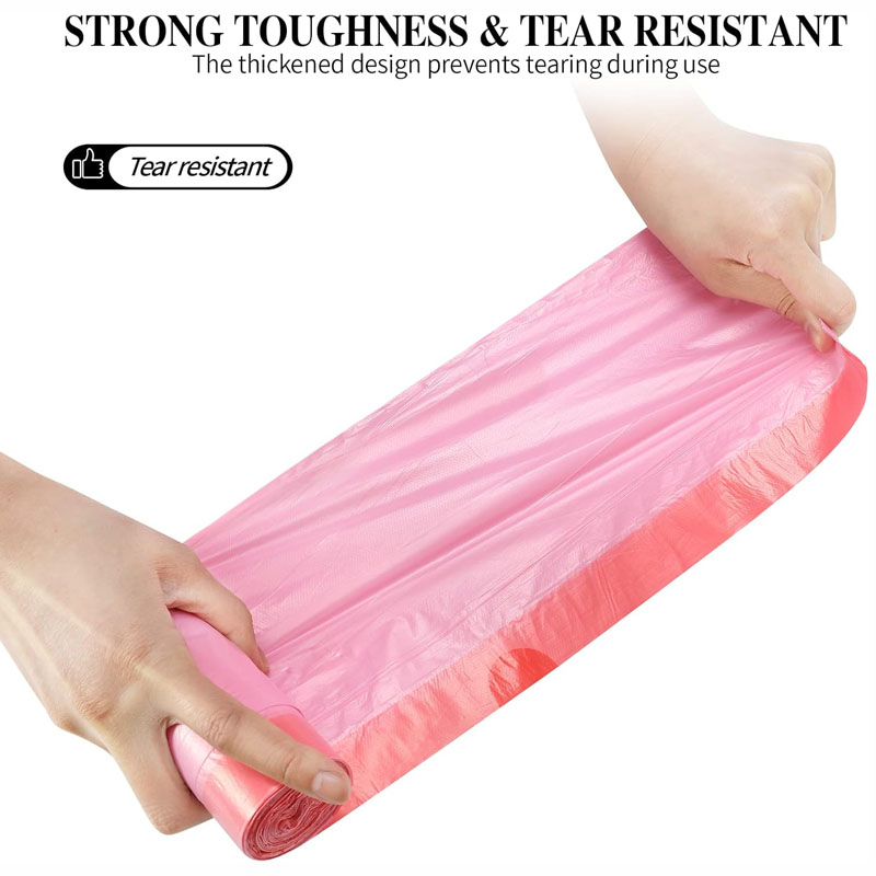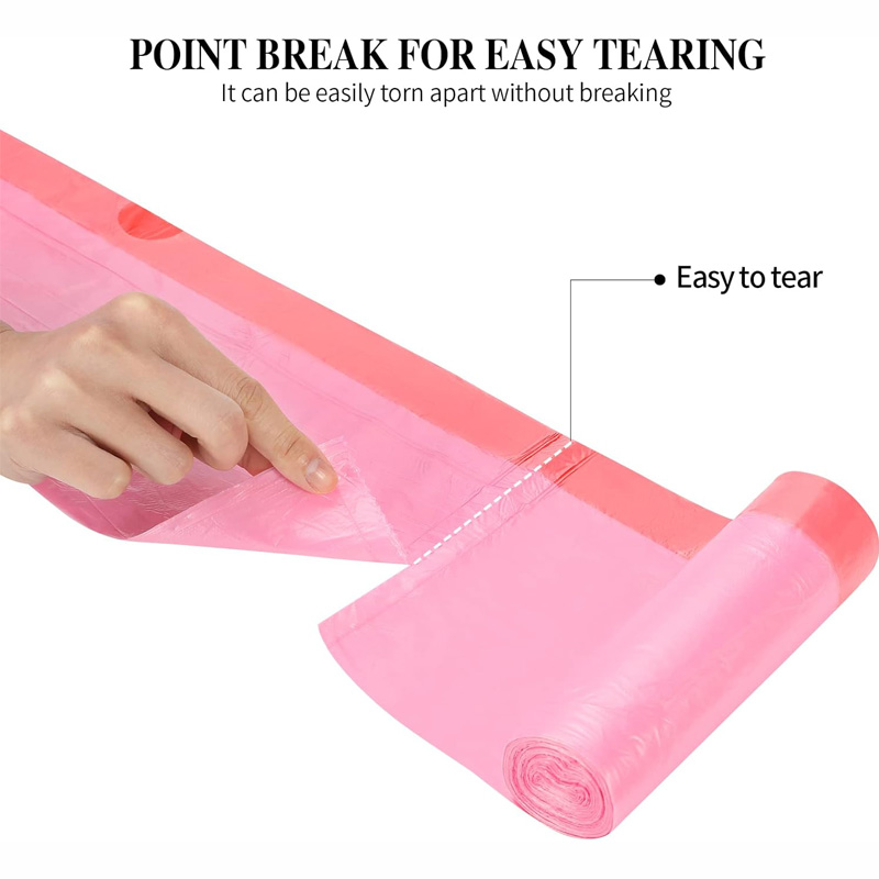 ひも付きのデザインで、ゴミを捨てる際に内蔵のプラスチック製のひもを引き出すだけで、素早くゴミ袋を密閉できます。